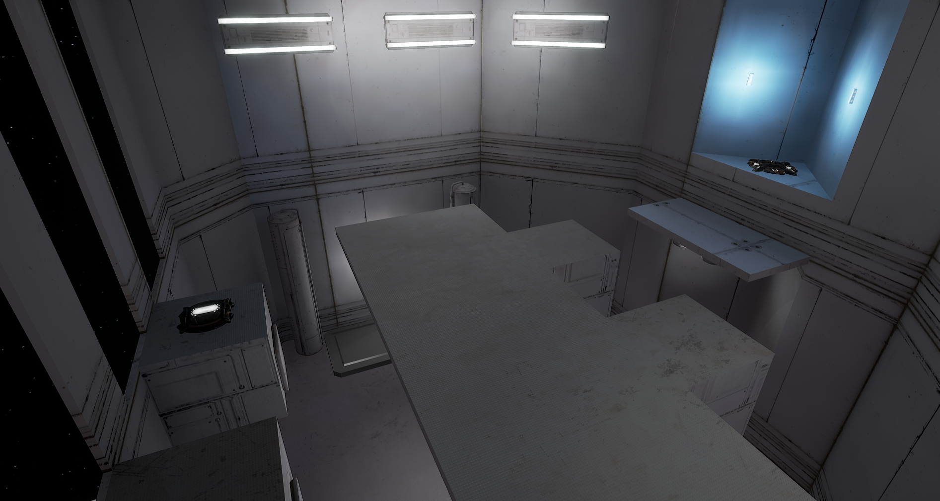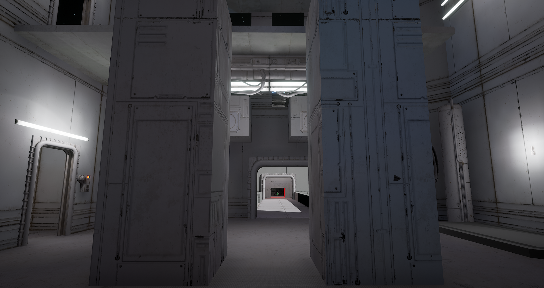 My goal with this map was to provide a concise symmetrical layout that allowed for a fair game but was easy enough to navigate. To avoid having players not be able to locate themselves quickly, I included noticeable differences inside some rooms through the use of props, as well as the use of lighting to color-coded each side as blue and red.