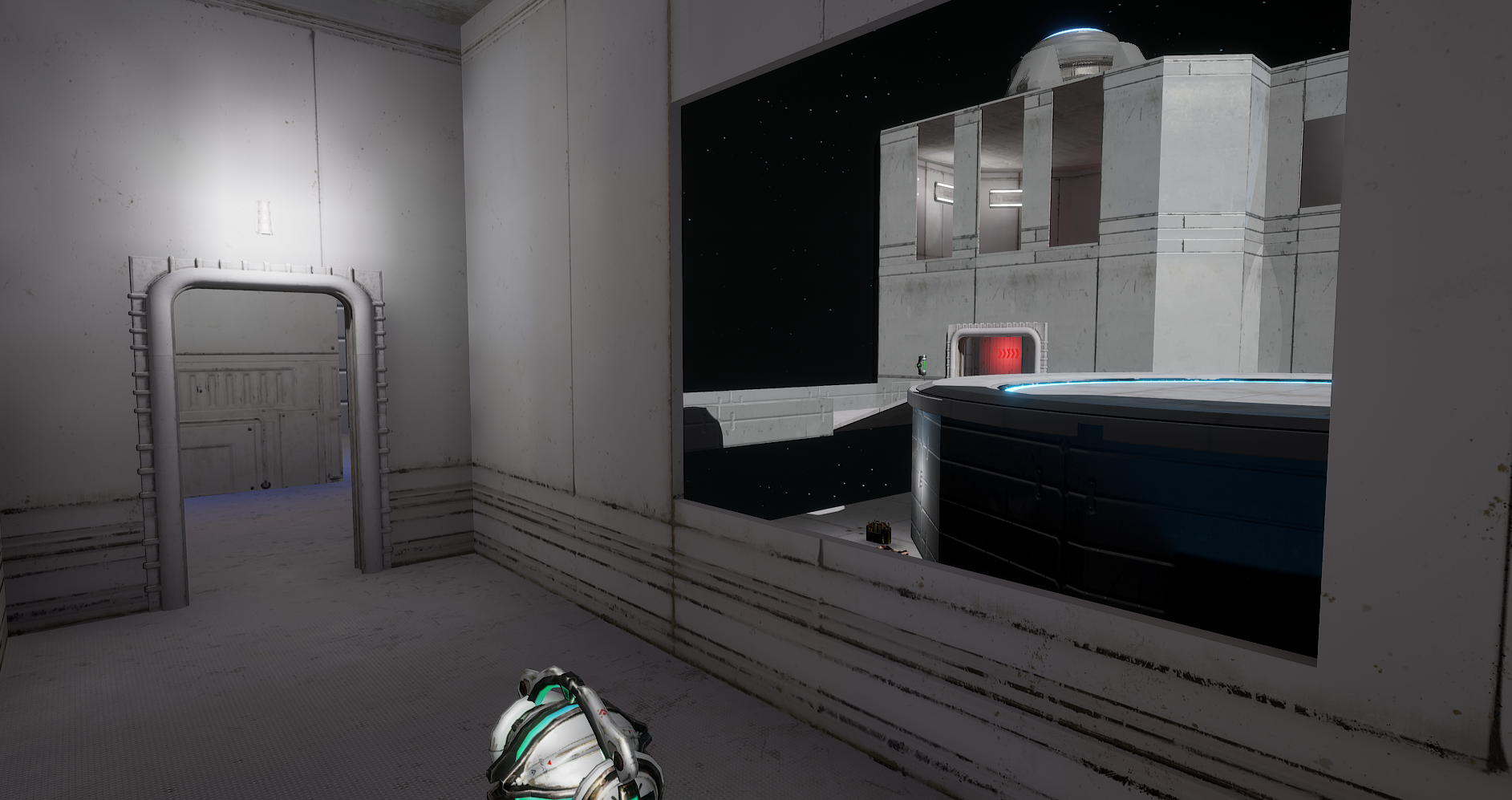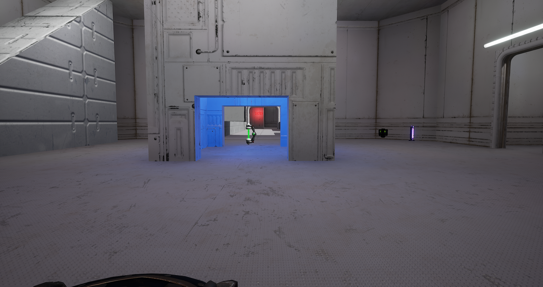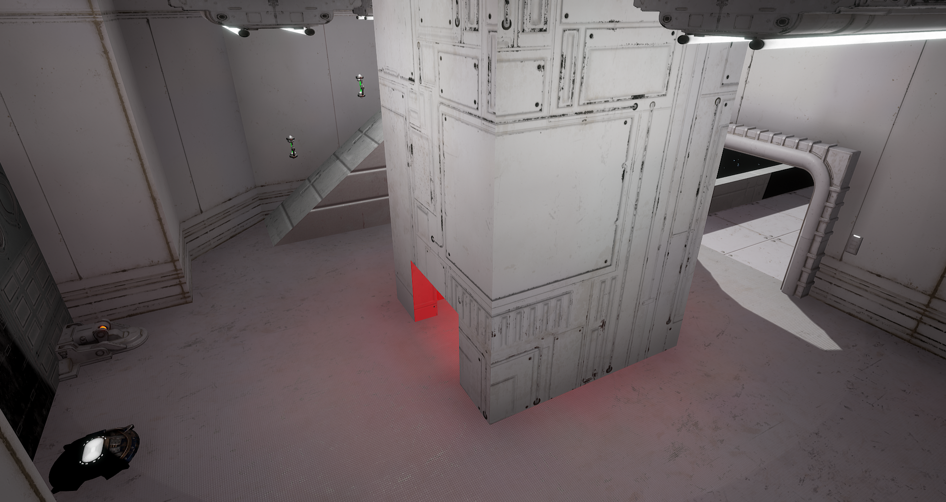 While one of the main goals was to support long-ranged weapons, I wanted to promote a more aggressive playstyle by ensuring all rooms had multiple entry and exit points that allowed constant movement, and no place was completely safe. In addition, most rooms have openings designed for bold and creative shortcuts.